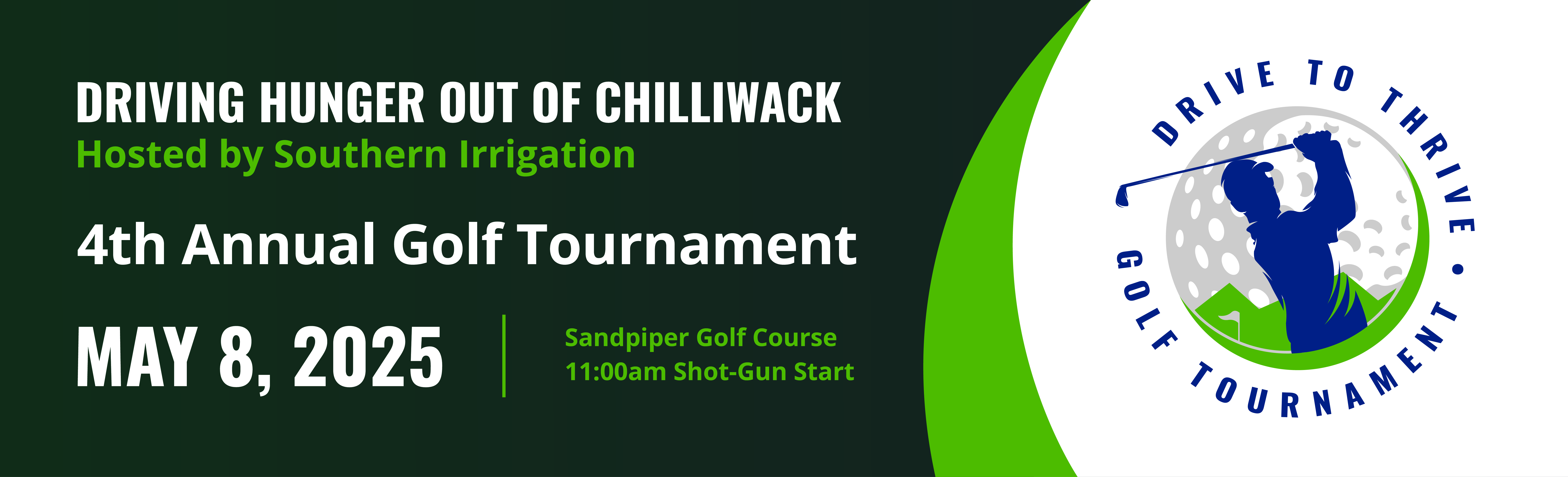 Welcome to our 4th Annual Golf Tournament, this year for the benefit of the Chilliwack Food Bank, which is facilitated by the Chilliwack Salvation Army. At last year's golf tournament, we were able to raise over $110,000 profit and our goal for the 2025 tournament is to raise over $150,000.